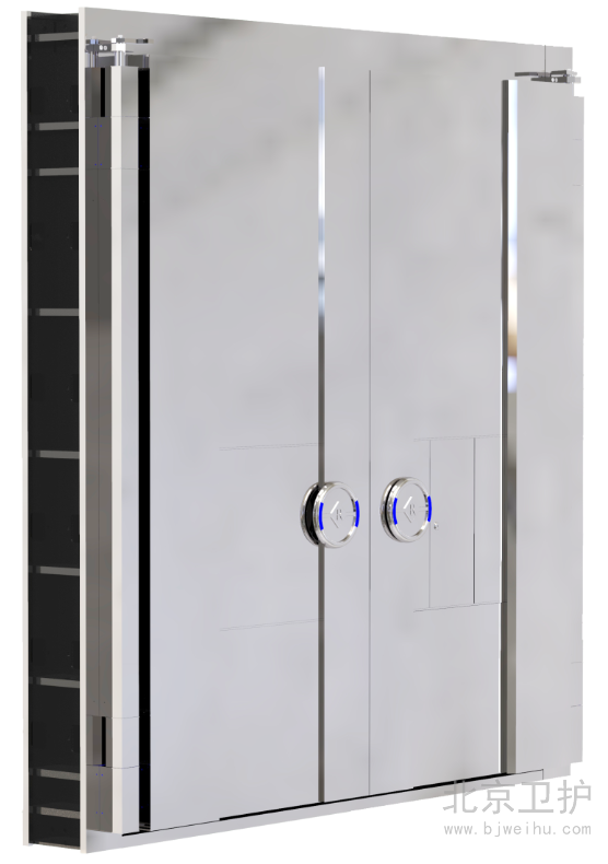 1. 雙手輪鎖栓機(jī)構(gòu):文物庫房門正面及背面都安裝有開關(guān)門的手輪,日常使用時,庫房管理人員進(jìn)入庫房后在庫房內(nèi)可以關(guān)閉庫房門,大大提高了庫房管理人員進(jìn)入庫房后人員及文物的安全。